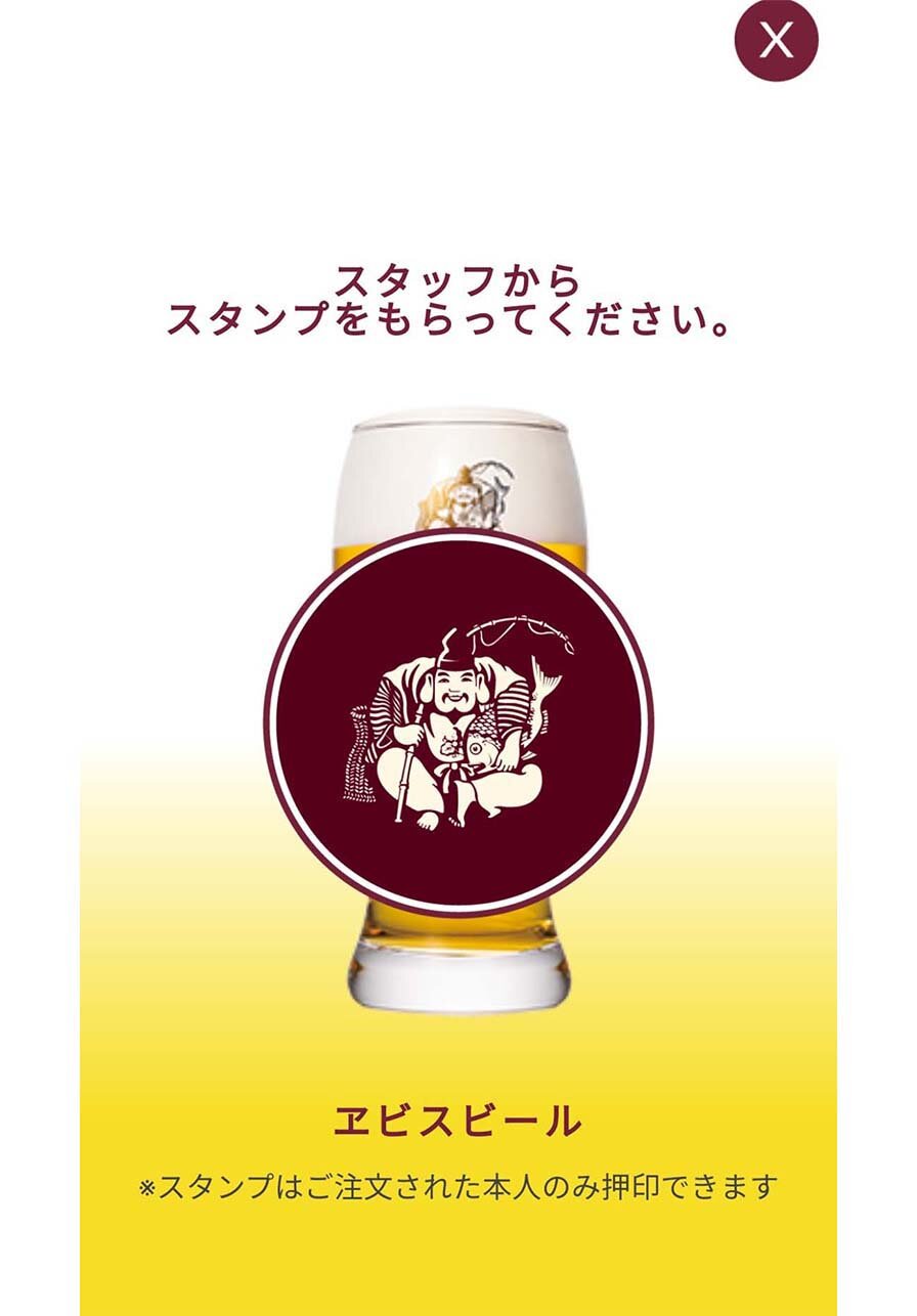 ヱビスビールご注文でスマホにスタンプ押印♪