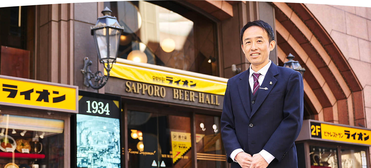 総支配人という役職は、銀座七丁目本店にしかありません。各階に個性的な店舗が入り、それぞれのフロアに支配人や店長がいて、従業員200名を超える大組織。1階には現存する日本最古のビヤホール<登録有形文化財(建造物)>を有する、いわば「90年来の銀座の顔」でもありますので、銀座ライオンビル全体を統括する人間が必要なのです。